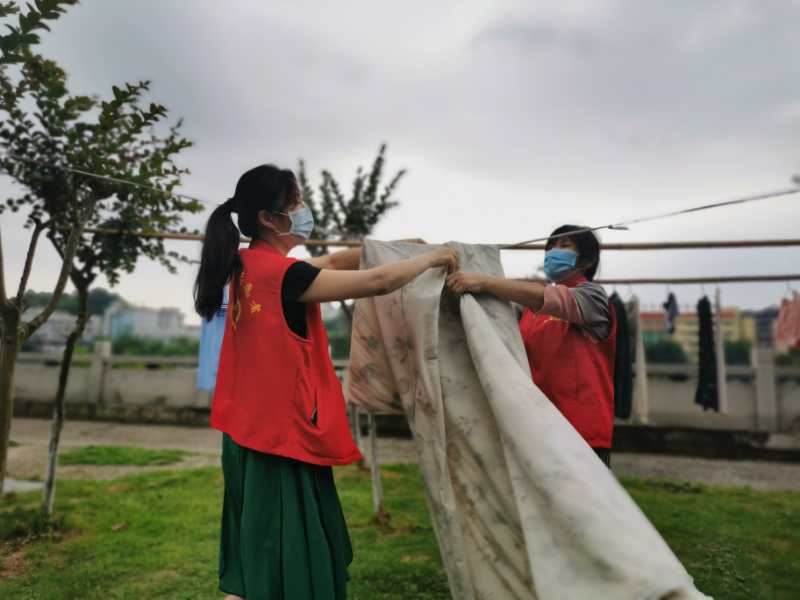 活动现场,市卫生健康委员会和社区的党员志愿者们手拿文明宣传牌,来到沿河边为四处绿化带添上“文明防护牌”,并对未戴口罩的居民进行劝导戴口罩。在麻石弄沿河绿化带一处,记者看到多棵树上绑上了各种长绳,晾晒满了被单和衣物,见到这样的场景,党员志愿者们立即上前把衣物收好放在一旁晒衣物的铁架上,不久后,市民也自觉把衣物收走。除此之外,志愿者们沿着沿河一路进行排查围栏是否有损坏,河边是否有垂钓者等等。