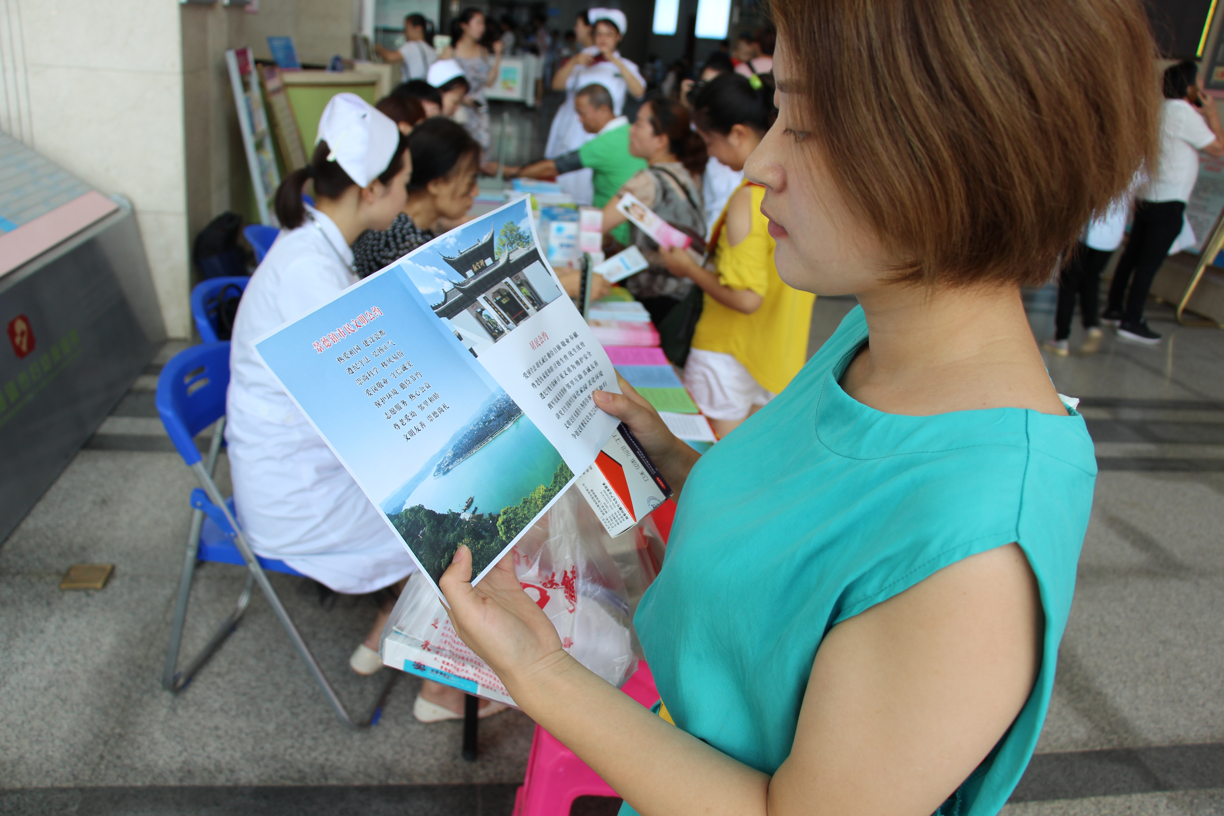 活动现场,市卫生计生委相关科室、市妇幼保健院妇保医务人员向前来就诊的患者及家属、陪同等发放景德镇市民文明公约、居民公约、孕产期保健、生殖保健、婴儿日常护理和母乳喂养等科学育儿、预防艾滋病、梅毒和乙肝母婴传播等科普知识折页;发放叶酸、避孕药具等优生优育药品;为前来咨询的群众量血压,解答问题,开健康处方等等。 现场来来往往的市民络绎不绝,有的要求“给我量下血压”、有的讲“我怀孕7个多月了,胃口还是不好,怎么办?”、有的咨询“市民文明公约、居民公约做什么用的?”、有的提出“我想再生个孩子可以吗?需要注意什么呢?”等等,面对群众的问题,宣传台前的市卫生计生委同志、市妇幼保健院医务同志一一耐心认真地给予答复。