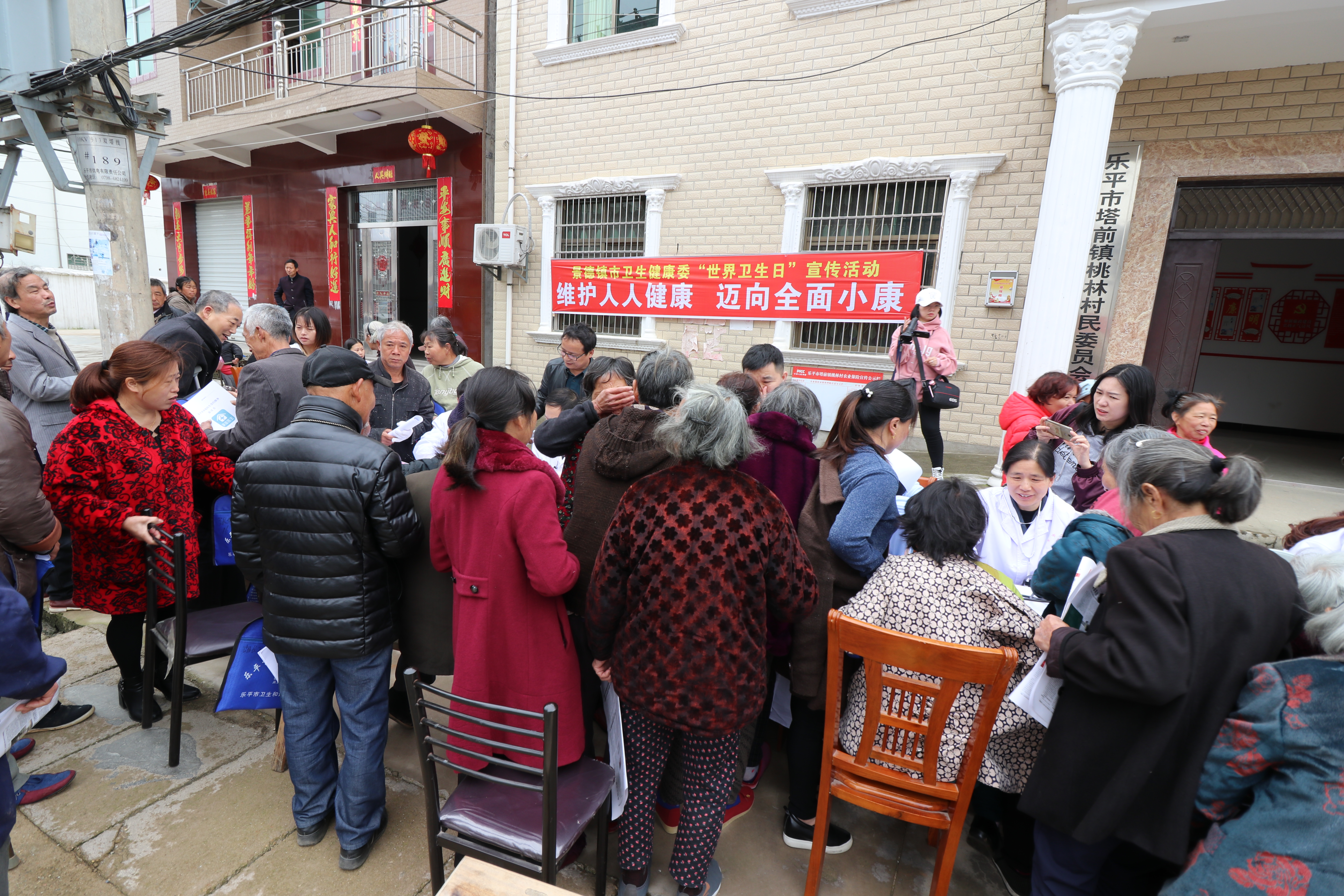 今年的4月7日是第70个“世界卫生日”,为进一步落实我市健康扶贫三年攻坚行动任务,向贫困人口宣传健康扶贫政策,提高政策知晓度,普及健康素养知识。4月10日上午,市卫健委组织市第二人民医院医务人员、市健康教育所健教工作人员16人来到乐平市塔前镇桃林村开展“世界卫生日”健康扶贫宣传活动。
