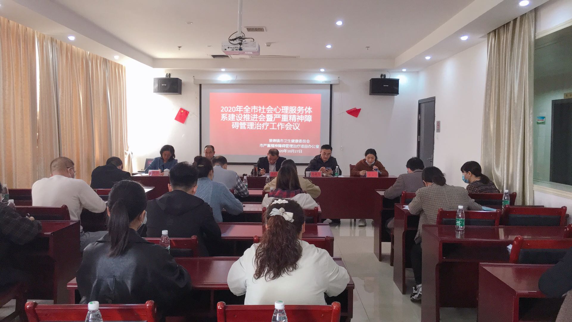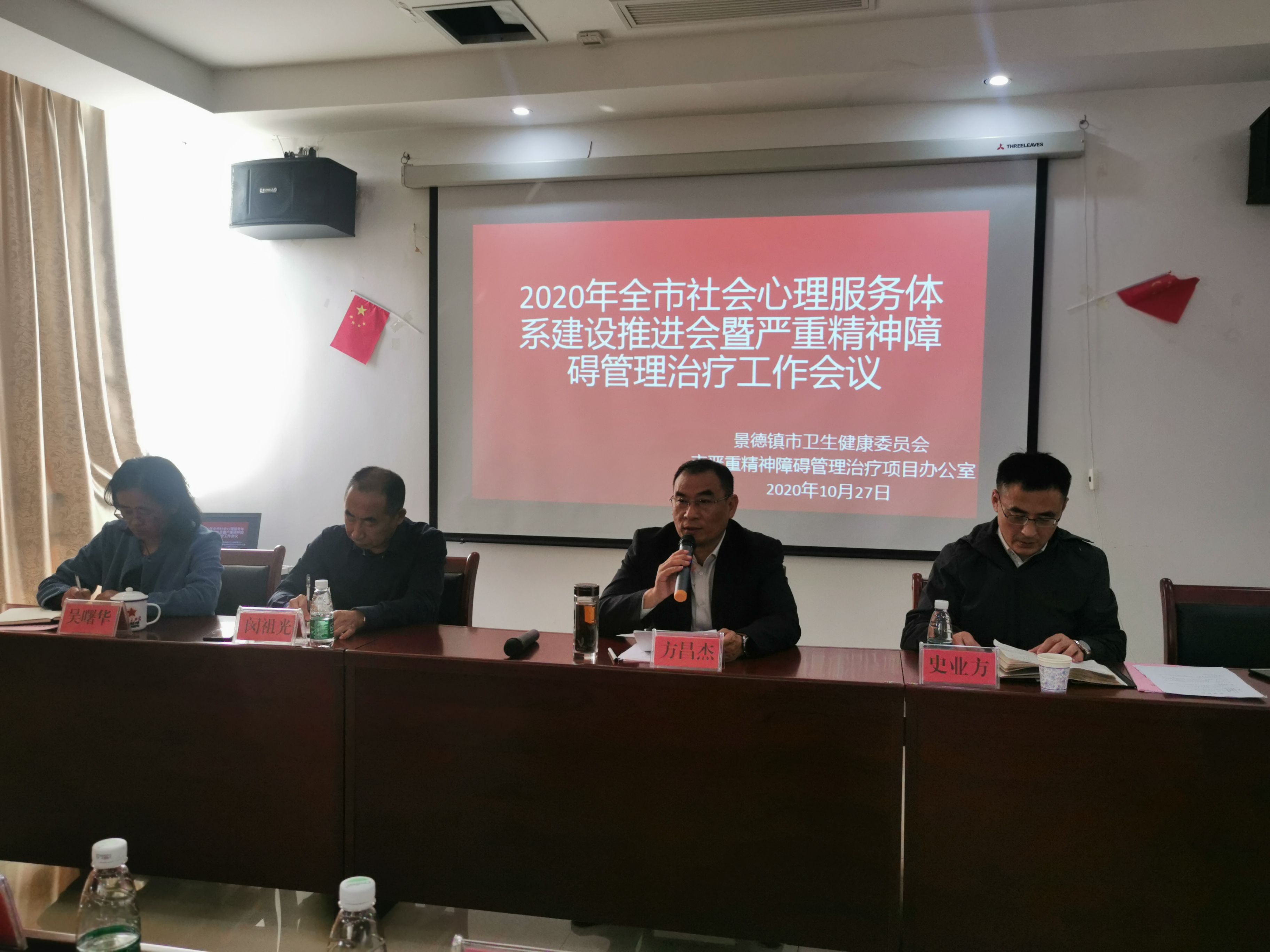 为贯彻落实我市市域内社会治理现代化试点工作,推进社会心理服务体系建设工作,切实加强严重精神障碍患者管理,2020年10月27日,市卫健委召开了2020年全市社会心理服务体系建设推进会暨严重精神障碍管理治疗工作会。会议由市卫健委医政医管科科长史业方主持,各县(市、区)卫健委分管领导、医政股股长、项目办主任、业务管理员、数据质控员;市四院院长、分管院长、医务科科长;市级业务管理员和数据质控员等人员参加,市卫健委党组成员、副主任方昌杰出席会议并作出重要讲话。