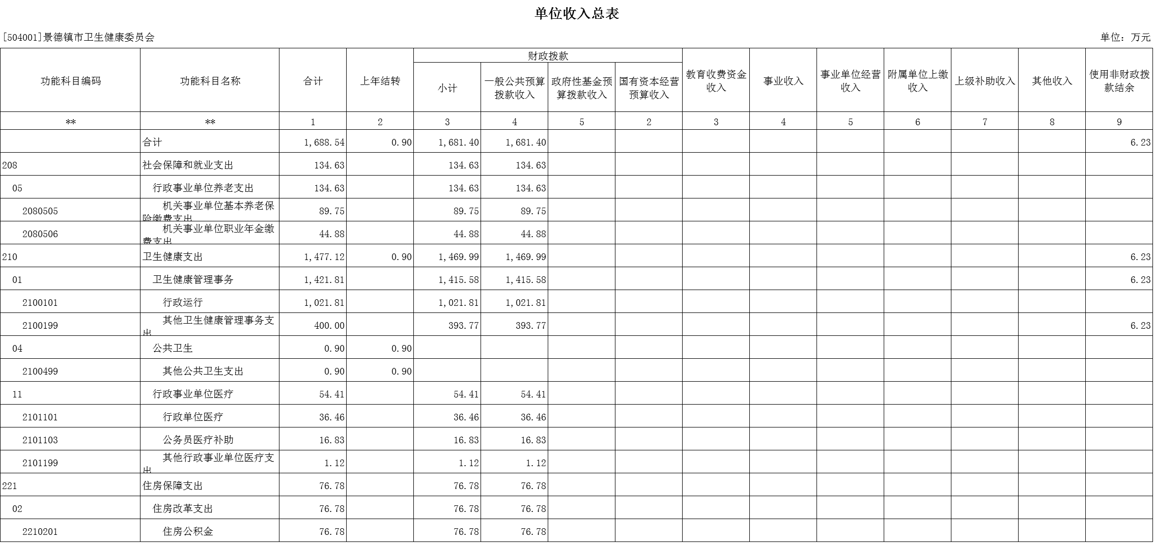 二、《单位收入总表》