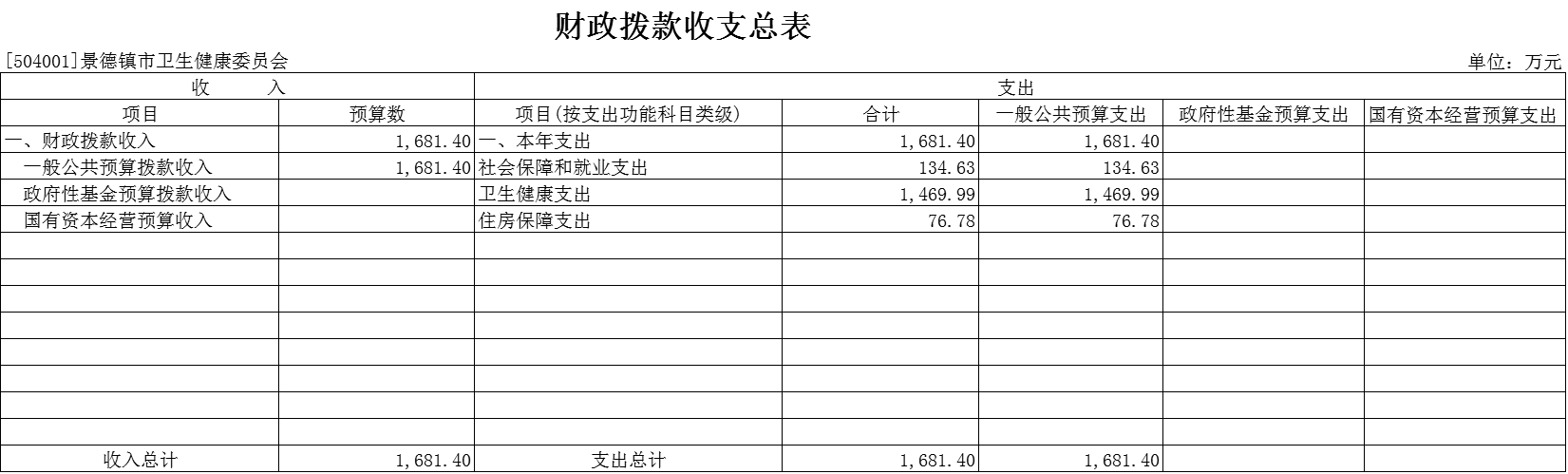 2025年景德镇市卫健委财政拨款支出预算总额1681.4万元,较上年预算安排减少247.97万元;其中: