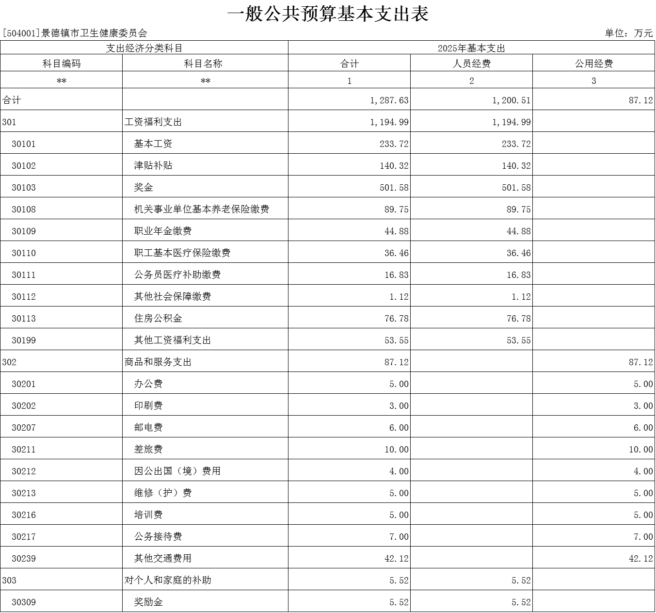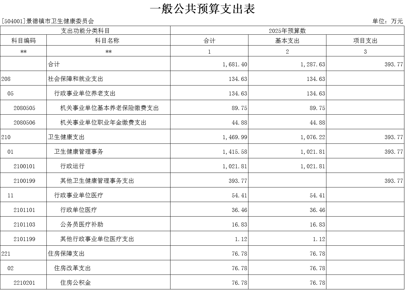 第二部分 景德镇市卫健委2025年部门预算表