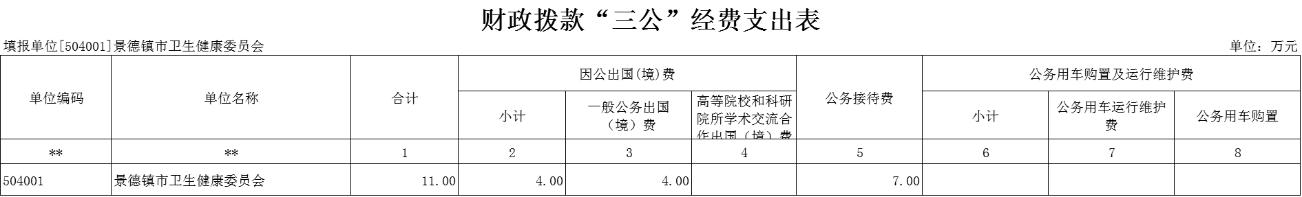 2025年景德镇市卫健委本级“三公”经费财政拨款安排9万元,规范公务接待管理,严格接待审批控制,厉行节约,不断压缩公务接待费支出。其中: