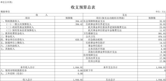 按支出功能科目划分:社会保障和就业支出35.92万元,较上年预算安排增加0.54万元;卫生健康支出991.05万元,较上年预算安排减少9.49万元;住房保障支出17.96万元,较上年预算安排增加0.27万元。