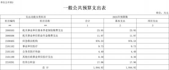 2025年景德镇市医疗紧急救援中心支出预算总额为1044.92万元,较上年预算安排减少8.68万元;其中: