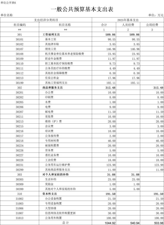 六、《一般公共预算基本支出表》