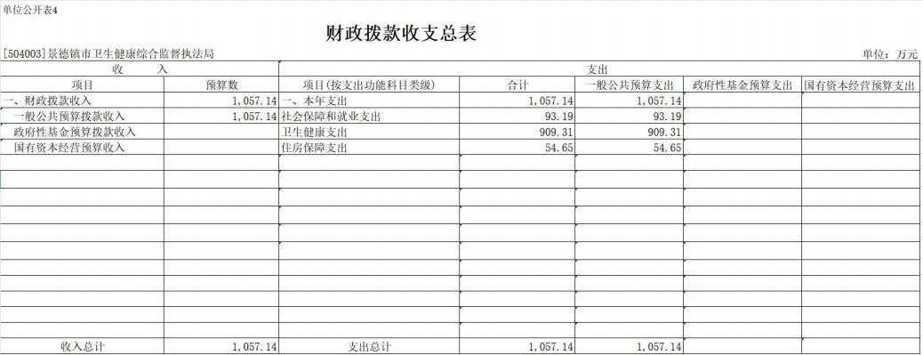 2025年景德镇市卫监局财政拨款支出预算总额1057.14万元,较上年预算安排增加19.35万元;