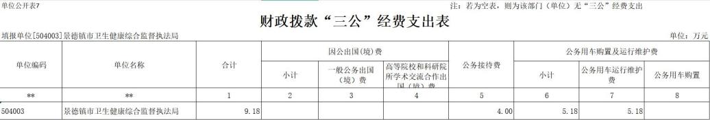 2025年景德镇市卫监局“三公”经费财政拨款安排9.18万元,其中: