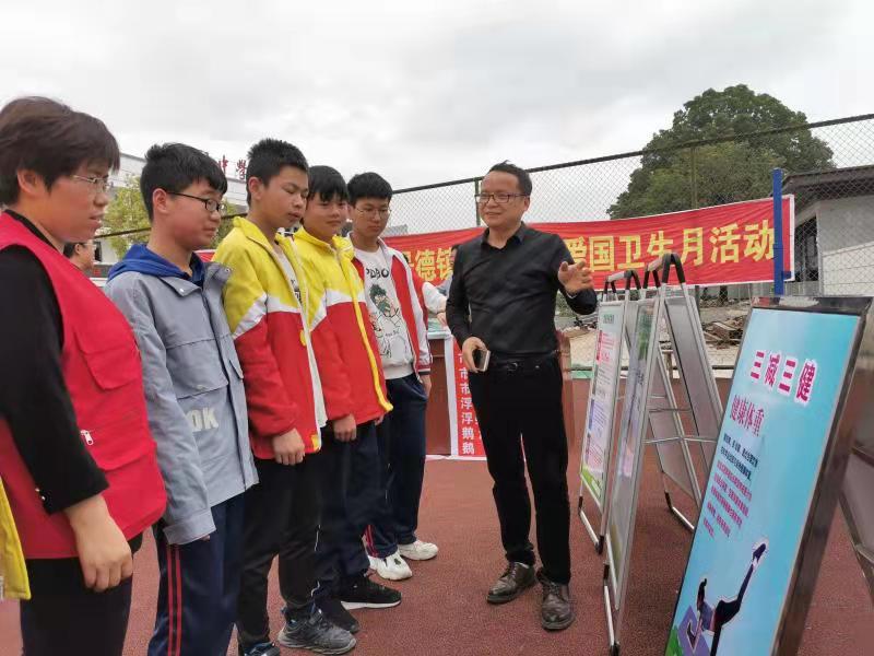今年4月是第33个爱国卫生月。4月20日,由市卫健委、市爱卫办、市健教所、市计生协联合浮梁县爱卫办、县卫健委、县科协开展的“庆百年华诞,筑健康瓷都”健康科普进校园活动在鹅湖镇鹅湖中学举行。这也是爱国卫生月系列活动的第二场活动。市卫健委调研员付建清及相关领导参加了该项活动。