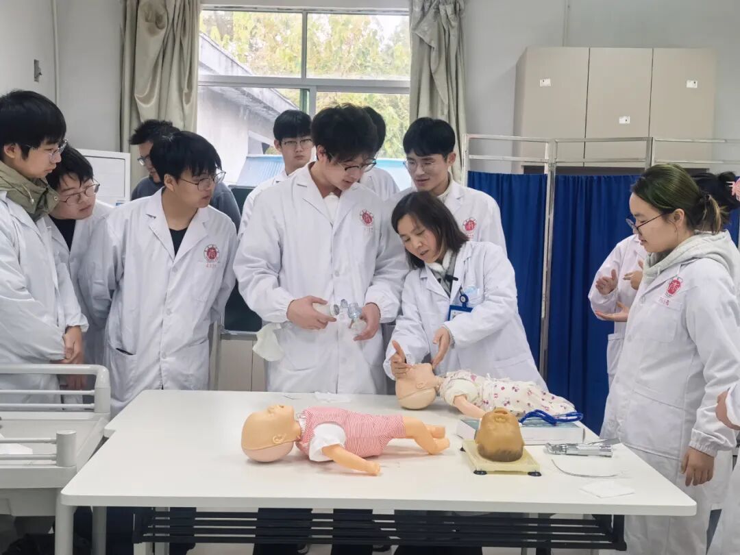 汇报结束后,副校长叶耀辉一行实地走访了医院教学场地,课间深入401教室看望学生,与学生们亲切互动交流。随后前往实训中心旁听了儿科学实训课程,近距离观察教学过程、师生互动等情况。同时,材料组检查专家还对分段教学相关材料进行了专项检查,细致查阅了教学计划、教案、考核记录等资料,对教学工作的规范性进行了全面评估。
