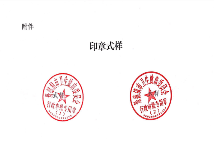 根据《中共江西省委办公厅、江西省人民政府办公厅关于景德镇市和乐平市等4个县(市、区)相对集中行政许可权改革方案的批复》(赣办字〔2023〕29号)和《中共景德镇市委办公室、景德镇市人民政府办公室关于印发〈景德镇市相对集中行政许可权改革实施方案〉的通知》(景办字〔2023〕24号)等文件精神,自2025年7月1日起,我委饮用水供水单位卫生许可、公共场所卫生许可、医师执业注册、外籍医师在华短期执业许可、护士执业注册(含相关子项)审批职能划转至景德镇市政务服务管理局(景德镇市行政审批局)。为规范印章使用,自本通知印发之日起,原景德镇市卫生健康委员会行政审批专用章(1)(2)不再用于以上5项行政审批事项,启用景德镇市行政审批局相关印章。