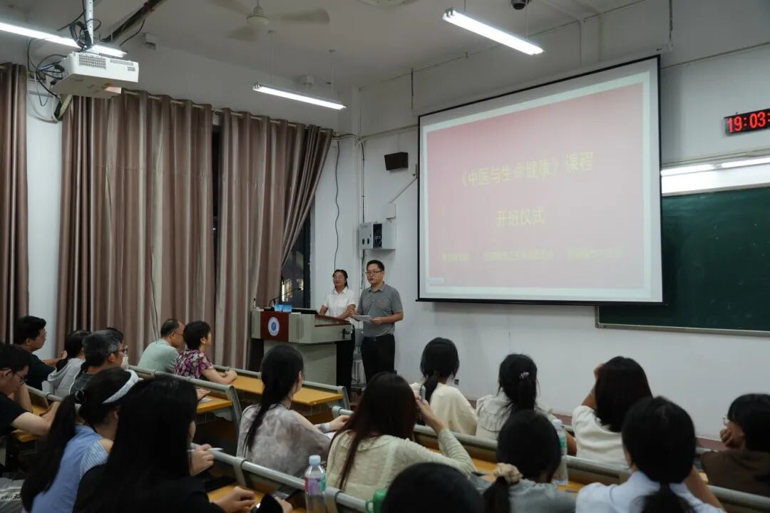 当天19时,该选修课首堂课程在景德镇学院如期开课。开课前期,首先举行了开班仪式,市卫健委、市中医医院以及景德镇学院相关负责人参加,与近百名选修课程的大学生共同见证这一重要时刻,标志着我市在中医药文化进校园、进课堂工作中迈出实质性步伐。