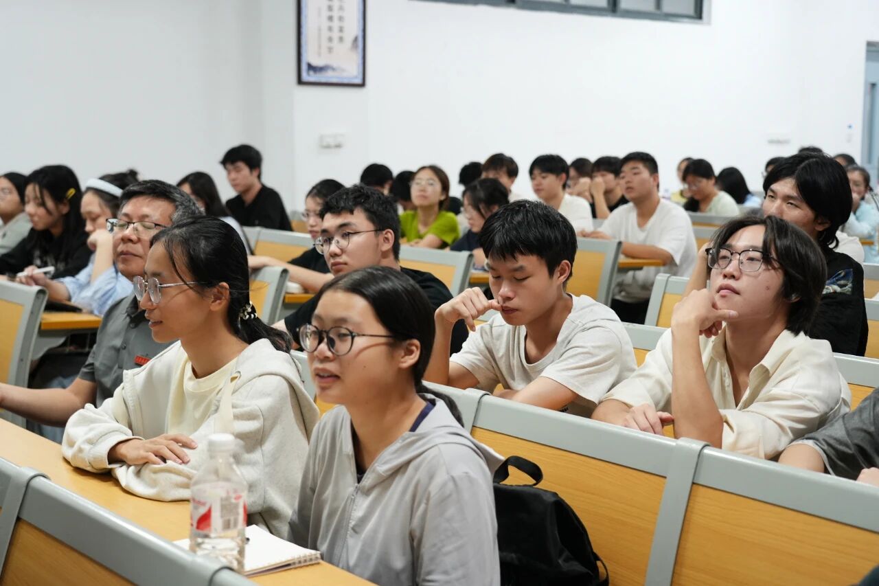 学生们听得全神贯注,眼神中对知识充满了渴望。当主讲老师提出问题时,台下的学生纷纷踊跃举手,竞相回答,气氛热烈非凡。有的学生在认真记录重点内容,字迹工整而迅速;有的学生则用手机拍摄课件重点,生怕错过任何一个关键知识点。整个课堂氛围活跃而有序,学生们在其中尽情汲取着中医药文化的养分。